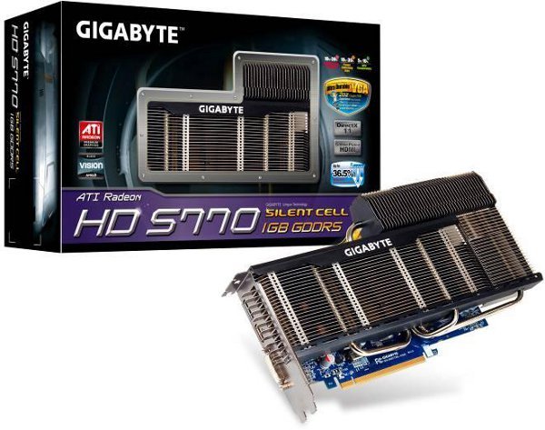 El modelo que hemos recibido, además, tiene una importante particularidad: Gigabyte nos ha mandado una Radeon HD 5770 que funciona a la velocidad de serie, sin embargo la refrigeración es totalmente distinta: lleva un disipador pasivo muy curioso e impresionante llamado Silent Cell. Así pues, se trata de una HD 5770 muy interesante para los amantes del silencio.