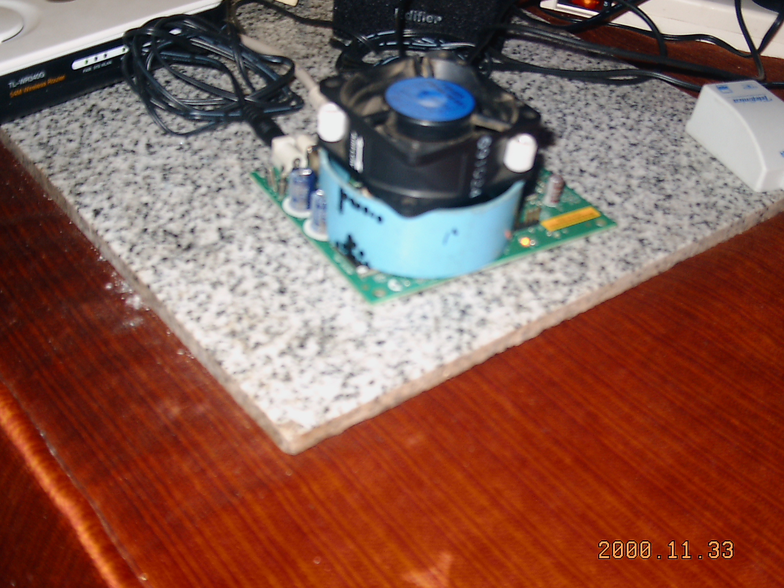 aca tenemos un cooler de 90 y un transformador de 12v 350mA empalman los cables.